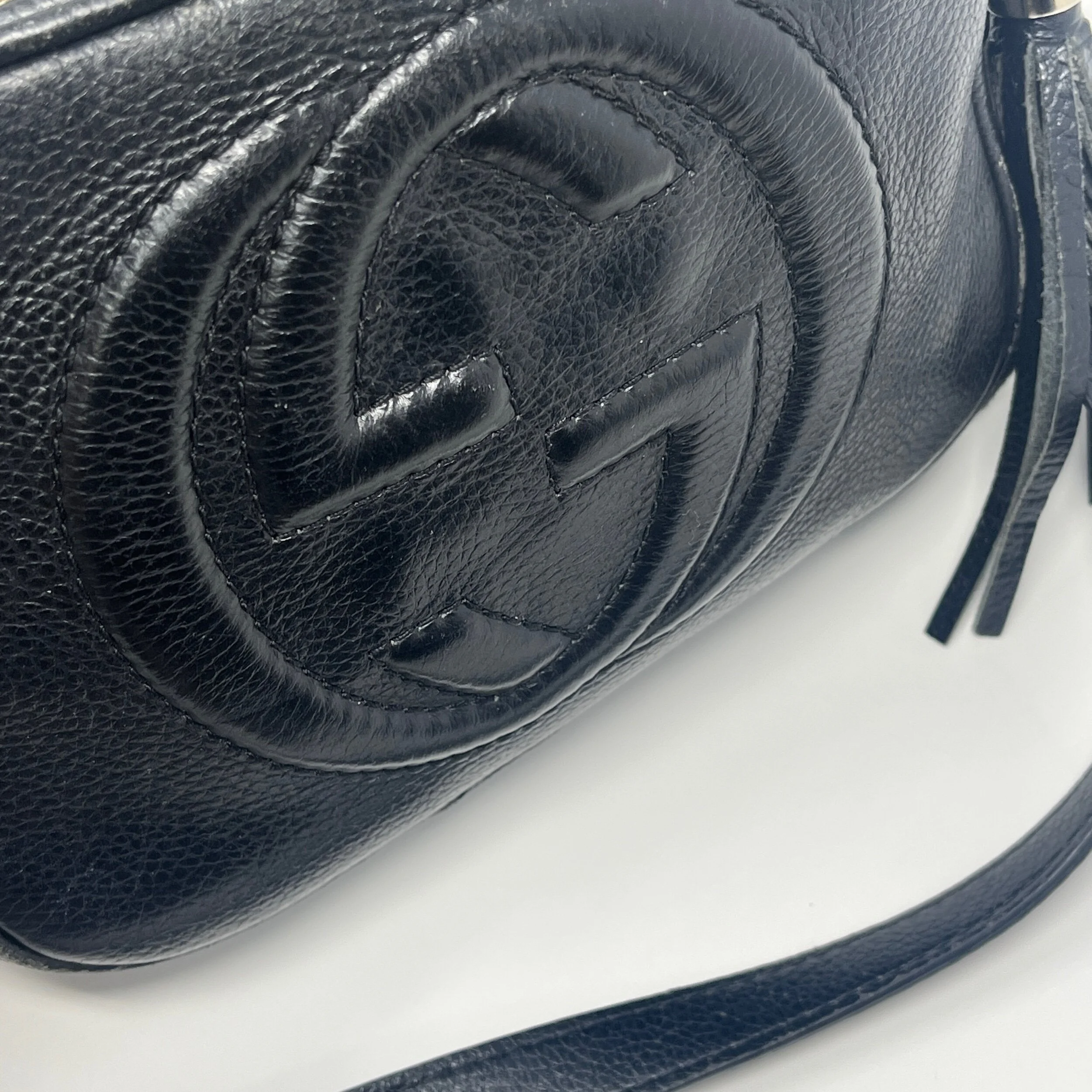 The black leather Gucci Soho bag is an iconic piece from the renowned Italian luxury brand, which has been crafting high-quality leather goods for over a century. It’s timeless design and impeccable craftsmanship make it a coveted accessory that is sure to elevate any outfit.