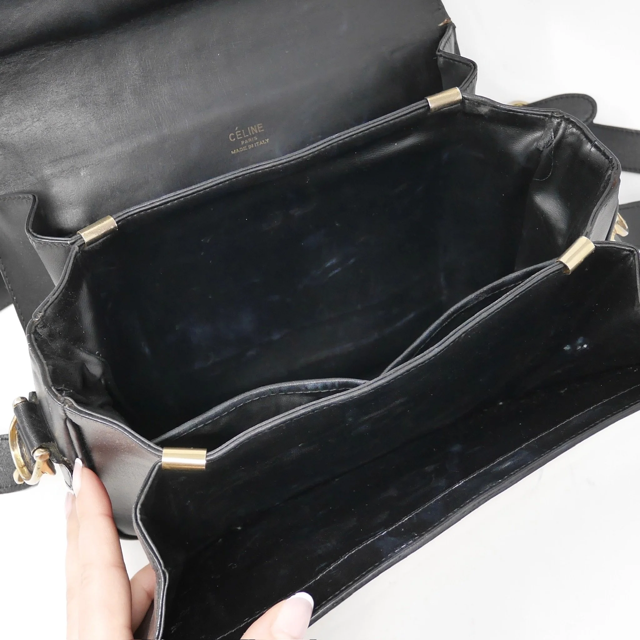 Interior: Leather-lined interior with slip pocket