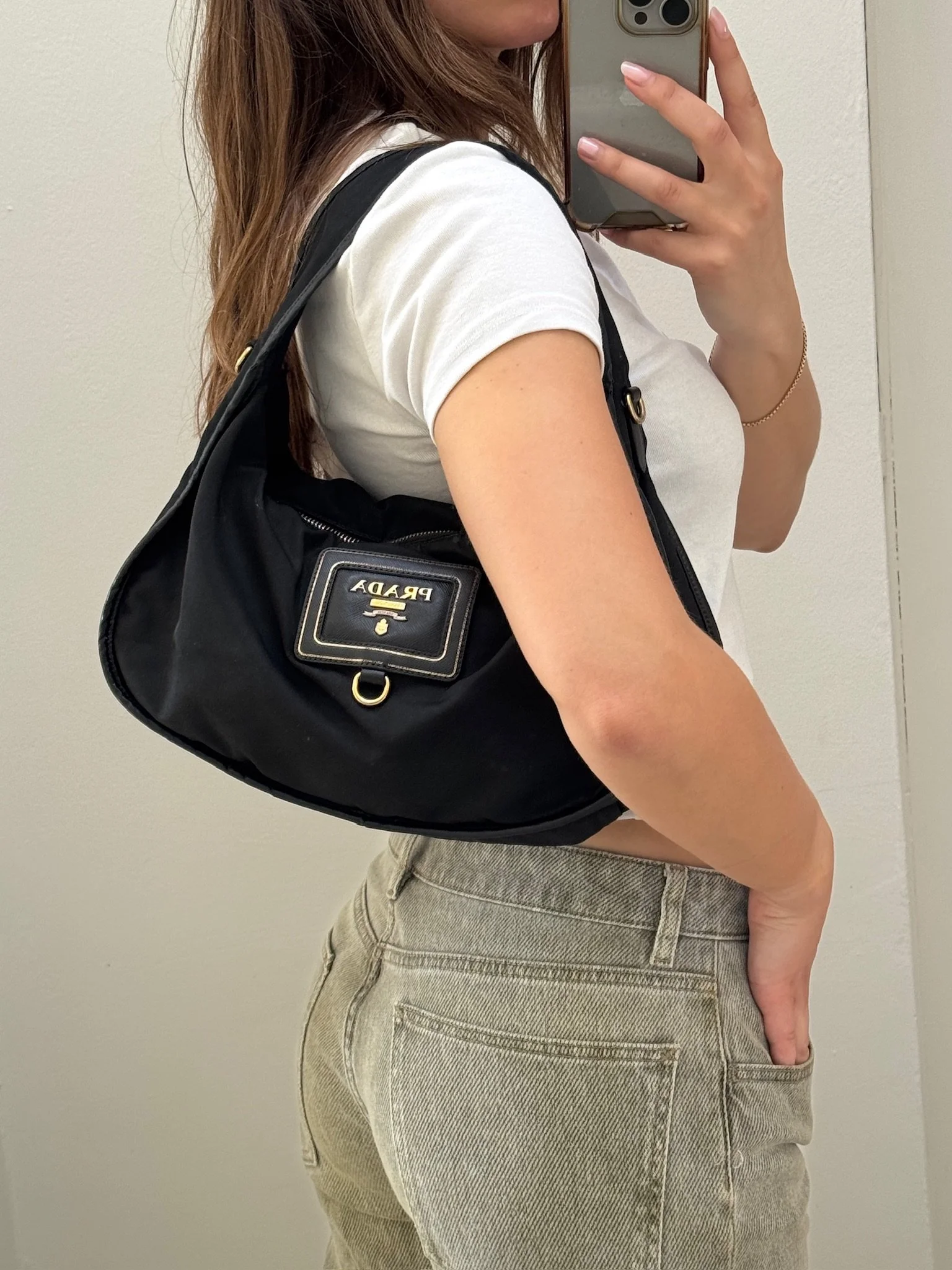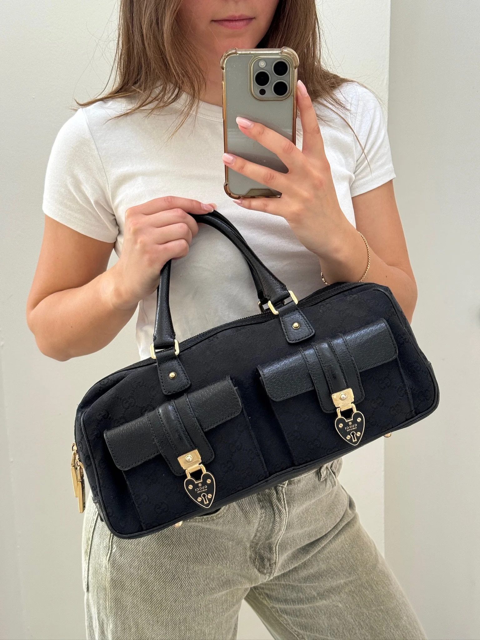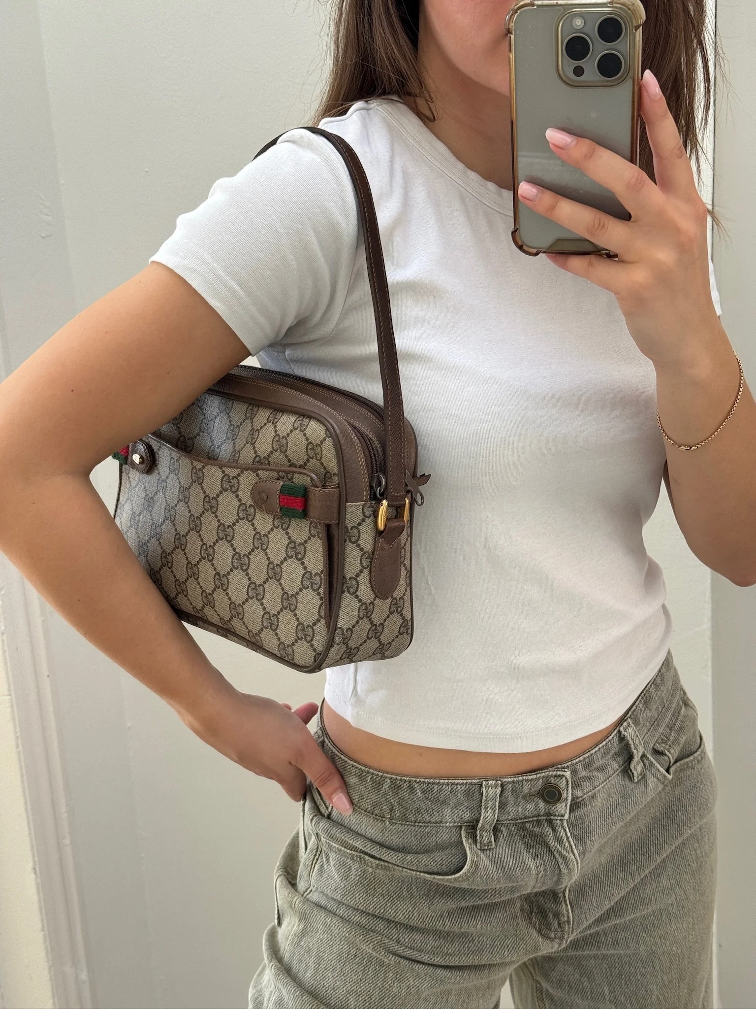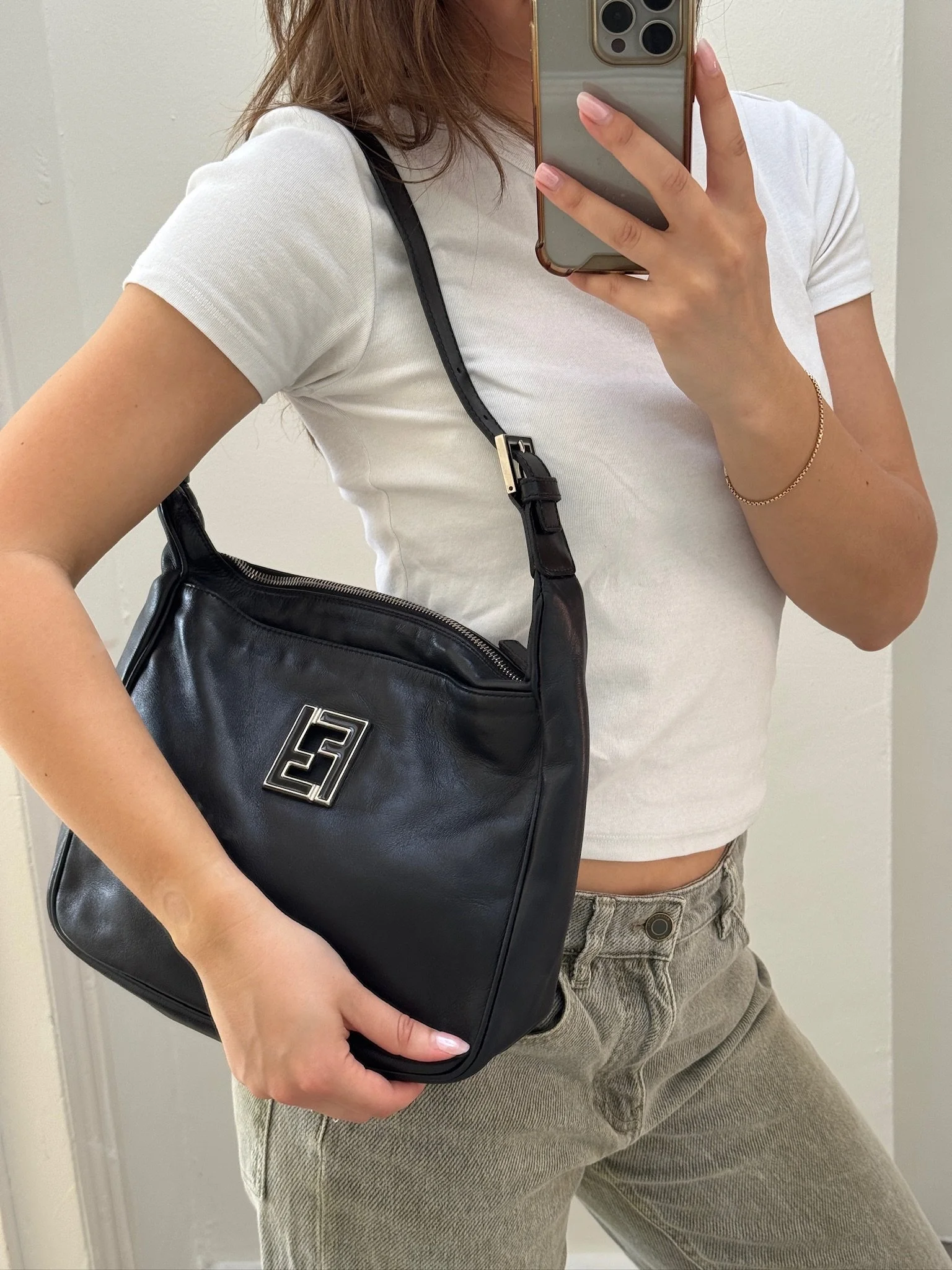 Strap: Leather-woven chain strap (can be worn long or doubled)