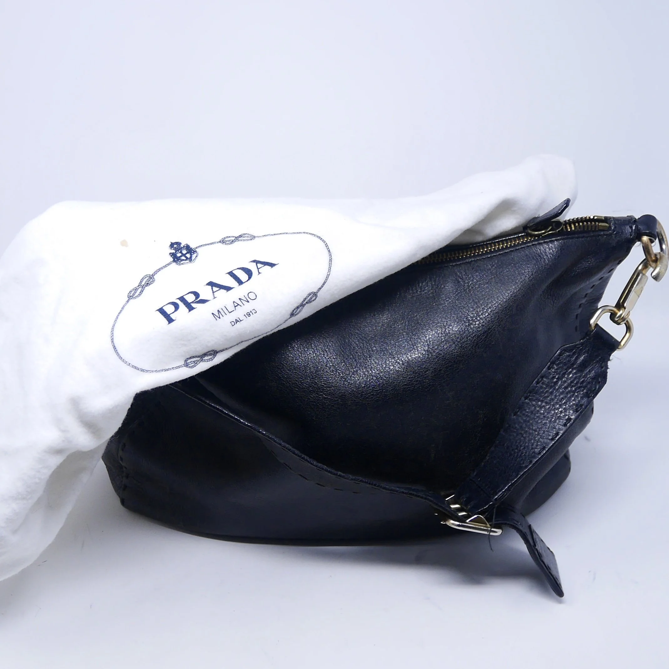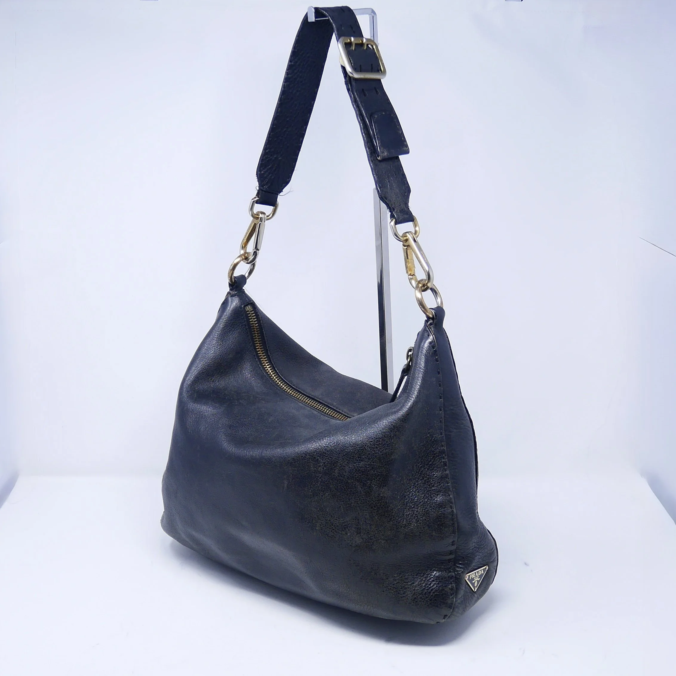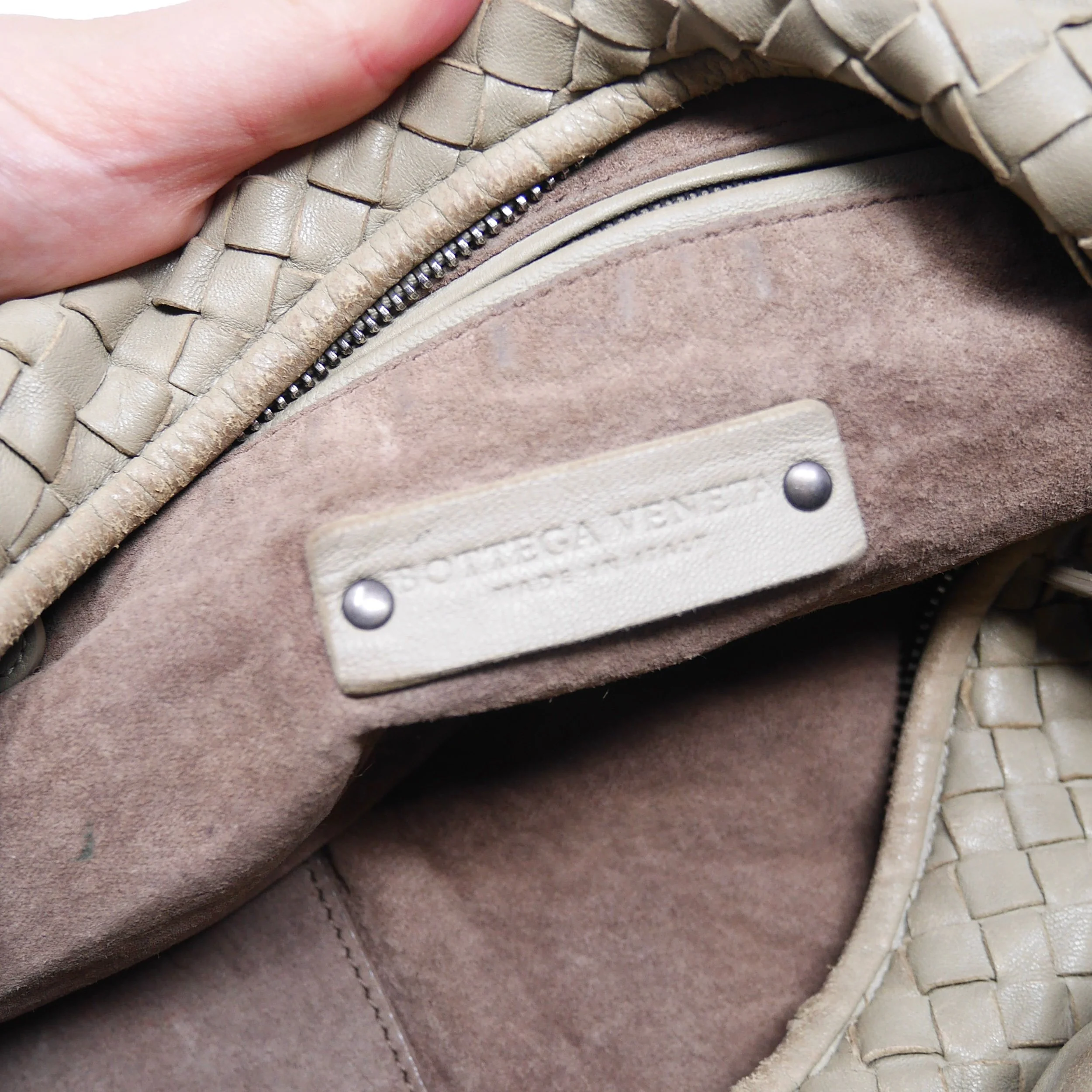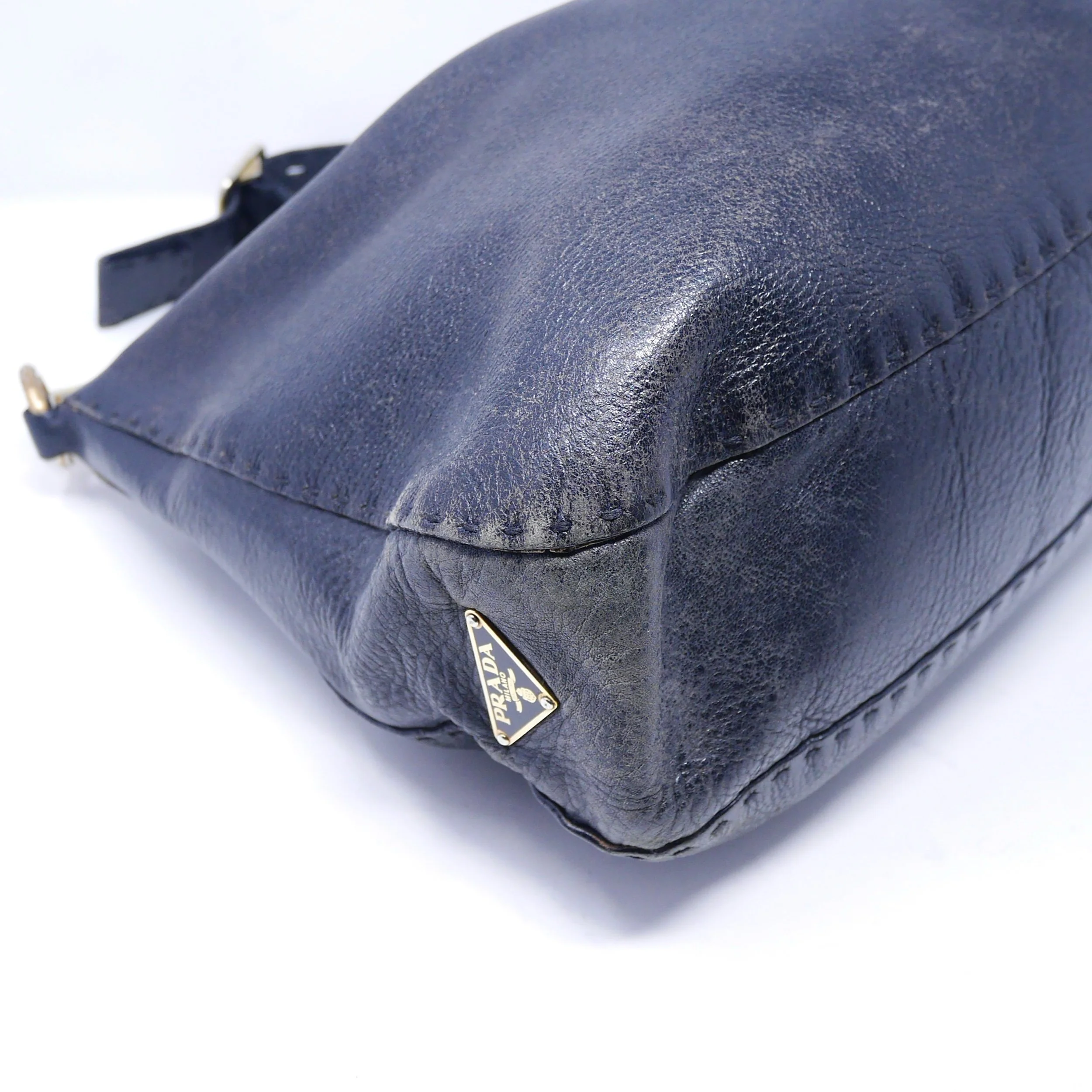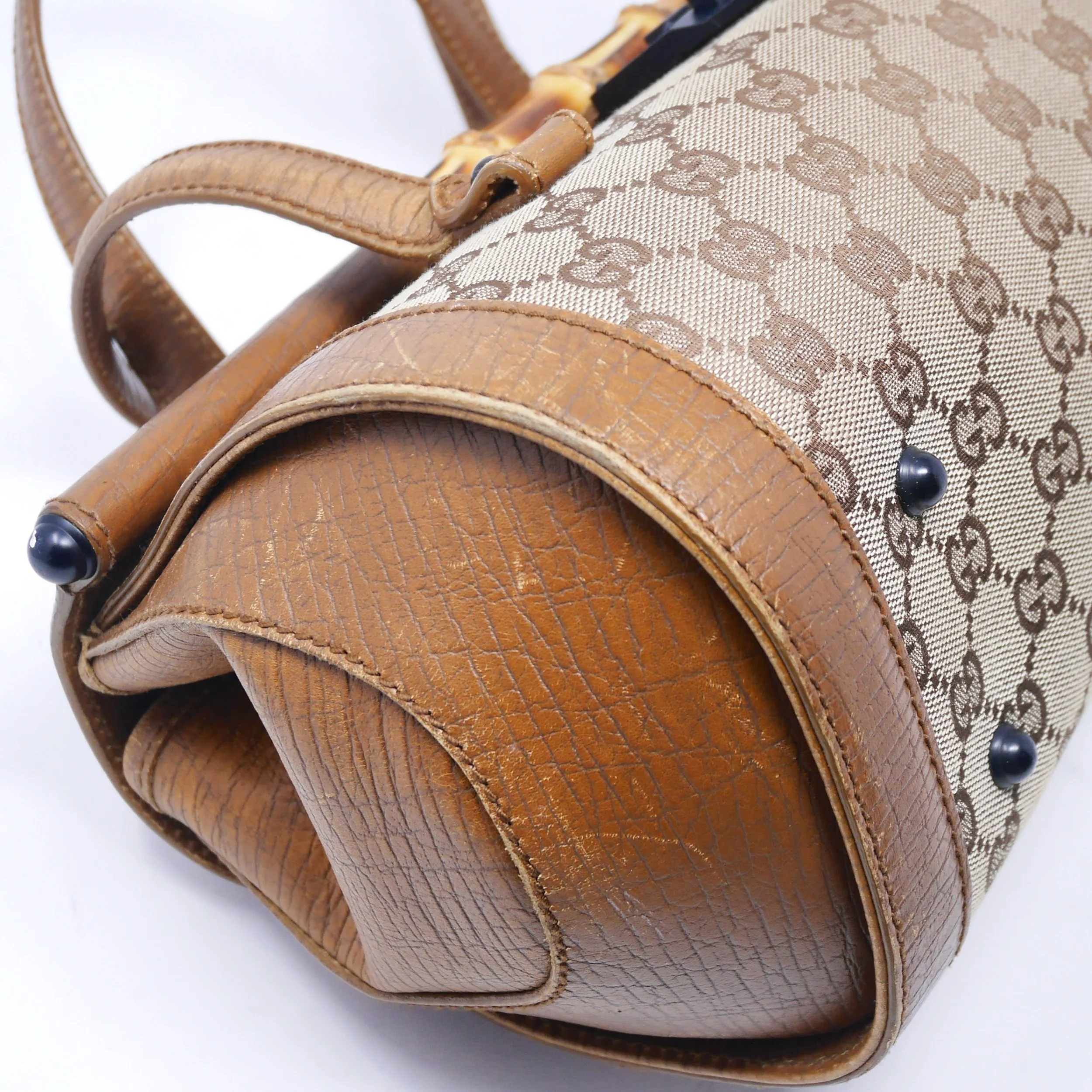 • Leather handle has developed a honey patina with some wear